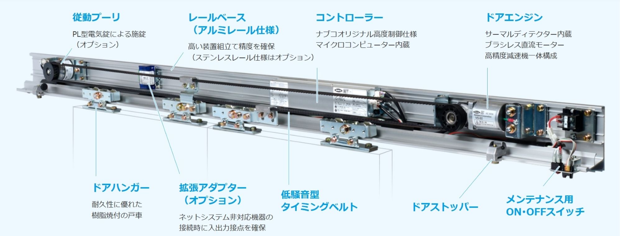コントローラー、モーター、センサー等はドア開閉の繰り返しや、