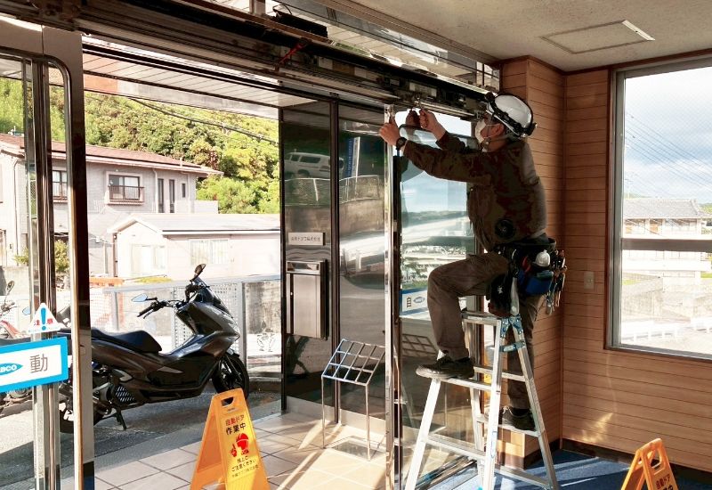 - 自動ドアの点検及び修繕。自動ドア以外ではサッシや鍵、自閉ドアなどもご依頼があれば修繕する事もあります。